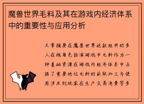 魔兽世界毛料及其在游戏内经济体系中的重要性与应用分析